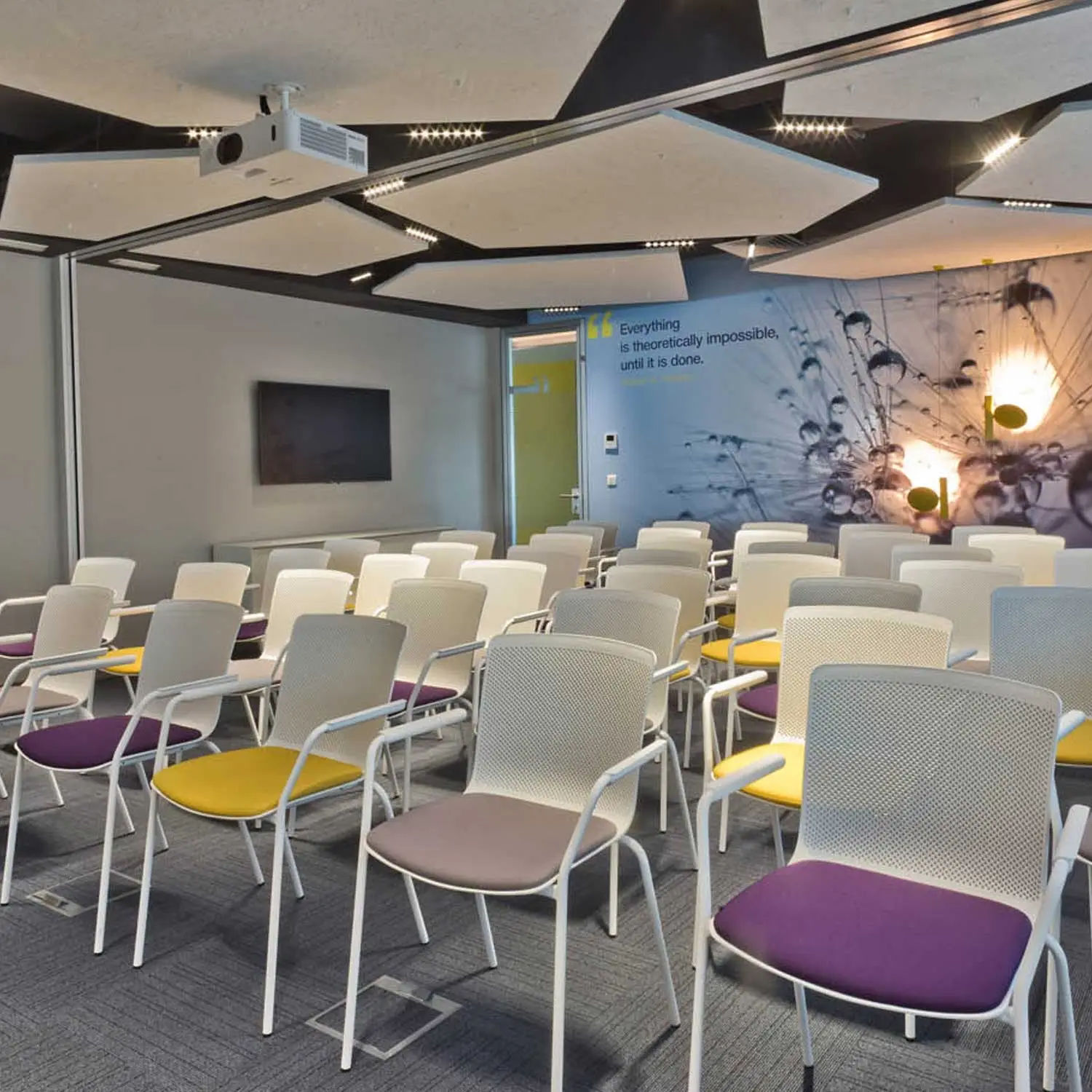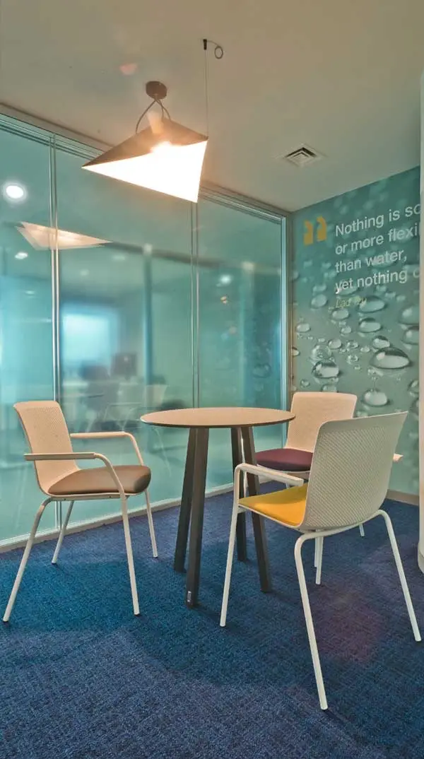 El núcleo central del espacio ha sido concebido para facilitar encuentros informales y promover la creatividad. Este área incluye mesas de reunión, armarios Plus y diversas cabinas telefónicas, que permiten a los empleados disfrutar de espacios privados para llamadas o videoconferencias. Además, se ha incorporado una sala de entrenamiento y varias zonas de cocina, diseñadas para favorecer la desconexión y fomentar un ambiente relajado y funcional. Todo el espacio sigue una línea de diseño coherente, donde destaca la silla de colectividades Glove, que gracias a su personalidad ayuda a definir y diferenciar visualmente las distintas funciones de cada área. Los despachos ejecutivos han sido diseñados con mesas de semidirección. Este mobiliario no solo proporciona una solución funcional para los ejecutivos, sino que también eleva la imagen general de las oficinas, combinando diseño, comodidad y profesionalismo.