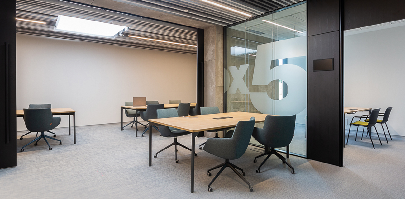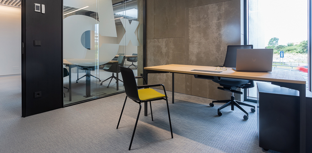 Las instalaciones incluyen diversas zonas diseñadas para cubrir todas las necesidades del entorno laboral actual. En las áreas de coworking destacan las mesas V30, que combinan funcionalidad y diseño para fomentar la colaboración y la flexibilidad. Los despachos están equipados con las sillas ergonómicas Kineo, que ofrecen un soporte óptimo y comodidad para largas jornadas de trabajo. Para las salas de reunión, las mesas Hexa se convierten en el punto focal, aportando calidez y versatilidad para facilitar el diálogo y la toma de decisiones. Por último, las salas de formación cuentan con las sillas Glove y las mesas F25, configurando espacios cómodos y prácticos que favorecen el aprendizaje y la concentración.